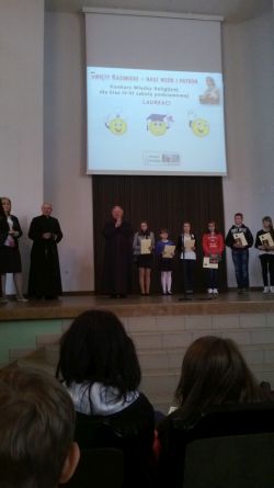 15 maja 2014 r. uczennica klasy VI – KASIA DUSIŃSKA wzięła udział w finale diecezjalnym konkursu wiedzy religijnej pt. „Święty Kazimierz nasz wzór i patron”, który odbył się w Wyższym Seminarium Duchownym w Radomiu. Podstawową lekturą do konkursu była przygotowana przez organizatorów książka. Celem konkursu było przybliżenie osoby i dzieła św. Kazimierza Jagiellończyka Patrona miasta Radomia i Diecezji Radomskiej. Pracowitość i wiedza jaką posiadała Kasia, pozwoliły jej mimo towarzyszących wielkich emocji zostać laureatką. GRATULUJEMY i życzymy dalszych sukcesów!